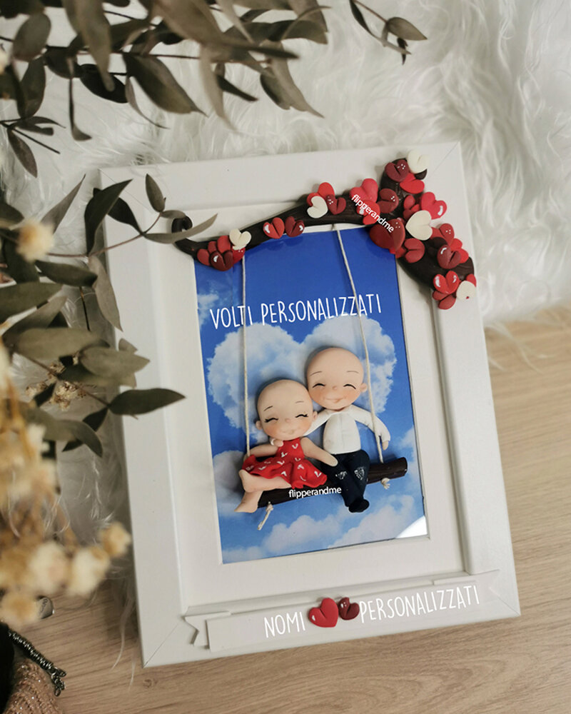 Una dolcissima cornice con coppia personalizzabile nei volti (capelli, eventuali occhiali, barba o baffi)