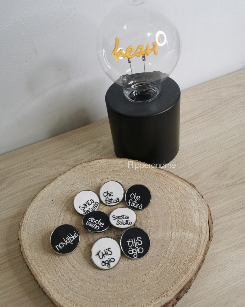 - diametro spilla 2,7 circa ( nb: le spille con fondo bianco hanno bordo bronzo, le spille con fondo nero hanno bordo argento)